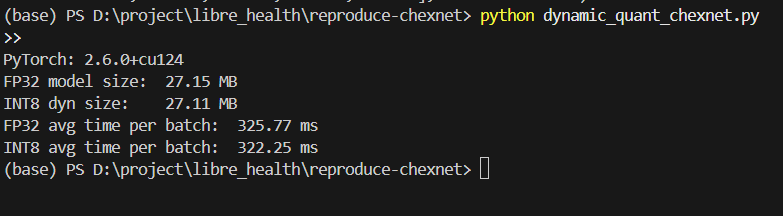 I’m working on the preliminary task “Dynamically quantize the CheXNet model” for the NeoRoo project. I did a first experiment and would like feedback.